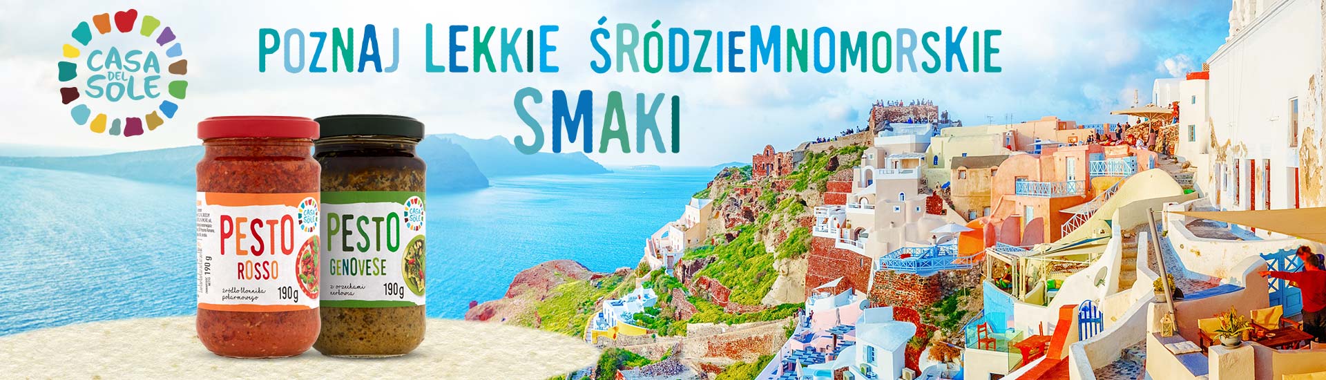 Marka Casa del Sole proponuje produkty typowe dla kuchni śródziemnomorskiej. Spróbuj tradycyjnego pesto z bazylii lub pesto z suszonych pomidorów, które stanowią nieodłączny element włoskich dań z makaronem, sałatek caprese oraz przekąsek. Skuś się również na suszone pomidory w dwóch odsłonach: w zalewie oraz bez.