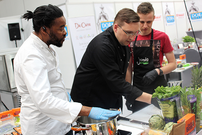 Wśród warsztatów i atrakcji dla zwiedzających Targi pojawiła się możliwość przygotowania wyszukanych, ale szybkich w przygotowaniu dań z Szefem kuchni Josephem Seelesto oraz zawodowym kucharzem i kierownikiem ds. rozwoju HoReCa De Care Andrzejem Polisiakiewiczem. Panowie zadbali, żeby każdy z uczestników warsztatów miał szansę poznać różne smaki, techniki przygotowania oraz dekorowania dań. Do gotowania używane były produkty z oferty De Care marek tj. House of Asia, Casa del Sur, Livity, Quality Food, Maille, Mazetti