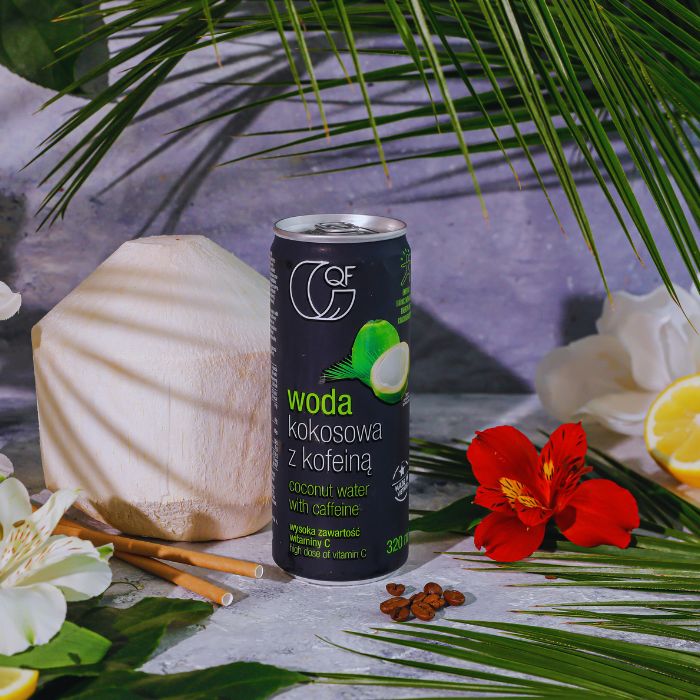 Woda kokosowa z kofeiną jest doskonałą alternatywą dla porannego espresso. Co ważne, nie barwi zębów i jest łagodna dla żołądka (kofeina pochodzi z guarany – rośliny znanej ze swoich właściwości stymulujących). Osoby aktywne fizycznie oraz ci, którzy potrzebują pobudzić umysł do intensywniejszej pracy, np. w trakcie egzaminów lub nowych projektów, z pewnością docenią tę zdrową i naturalną porcję energii.