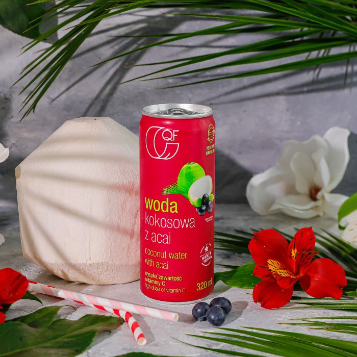 Woda kokosowa z kolagenem i acai to naturalny izotonik zawierający antyoksydanty pochodzące z jagód acai oraz dobrze przyswajalny kolagen pozyskiwany z ryb. Taki zestaw dobroczynnych składników zawartych w wodzie kokosowej będzie nie tylko nawadniał organizm, ale także wspomagał urodę. To za sprawą kolagenu zmarszczki ulegają spłyceniu, cellulit staje się mniej widoczny, a skóra wygląda promiennie! Picie wody kokosowej z kolagenem i acai będzie również wspomagało pracę stawów.