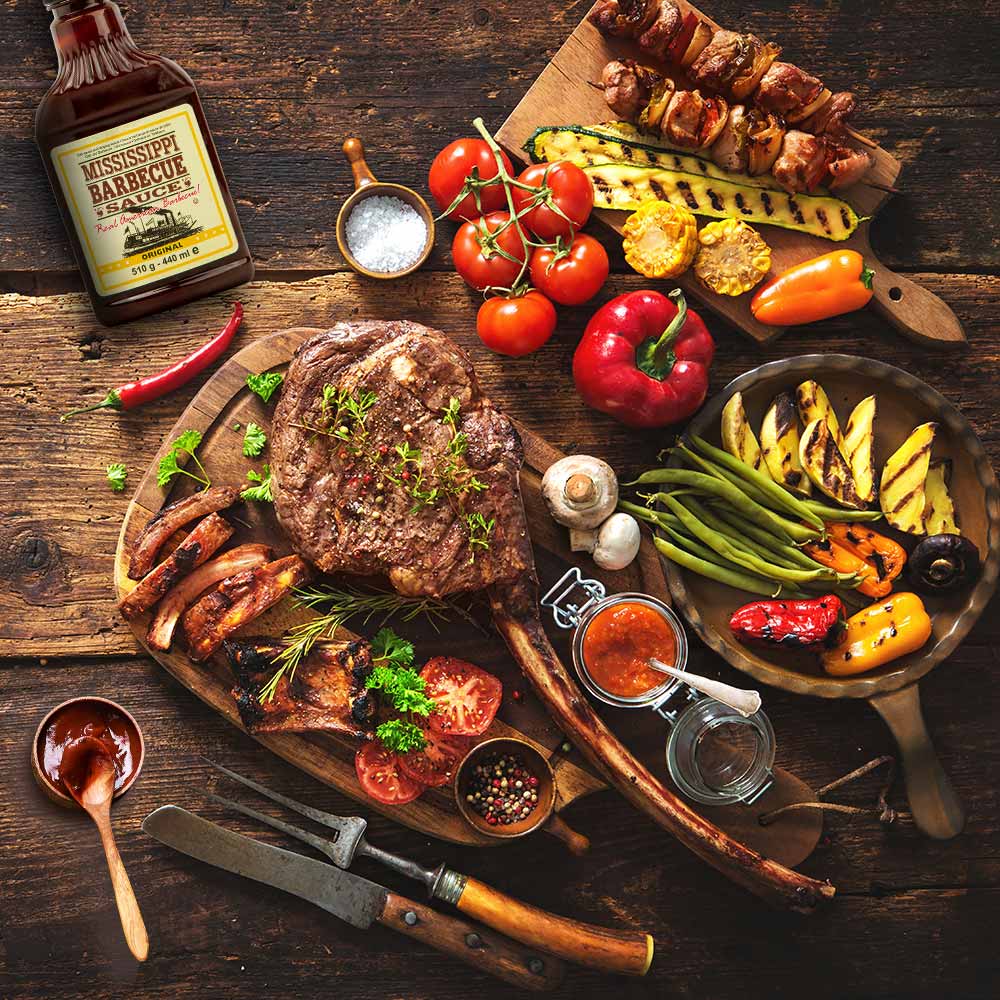 Marka Mississippi oferuje sosy BBQ dostępne w trzech wariantach smakowych: sos bbq słodko-pikantny, bbq słodko- łagodny oraz sos bbq oryginalny. Każdy z nich idealnie sprawdzi się jako dodatek do dań grillowanych, pieczonych oraz smażonych. Sosy wyśmienicie nadadzą się również do marynowania oraz glazurowania mięs oraz owoców morza, ponieważ dzięki tzw. wysokiemu punktowi zapalnemu, mięso zamarynowane w sosie Mississippi jest dodatkowo chronione przed przypaleniem. Decydując się na produkty marki Mississippi konsumenci otrzymują niepodrabialny smak najwyższej jakości uznany przez American Tasting Institute za najlepszy smak w kategorii sosów BBQ.