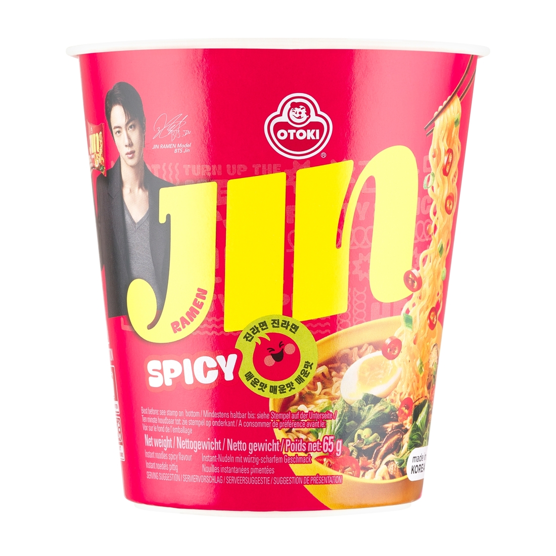 makaron PSZENNY Ramen instant 54,7 % [mąka PSZENNA, substancja zagęszczająca: E 1420, olej palmowy, olej słonecznikowy, sól, GLUTEN PSZENNY, ekstrakt z czosnku, emulgowany olej roślinny (oligosacharydy, olej SOJOWY, przeciwutleniacz: alfa-tokoferol, emulgatory: lecytyny (zawiera SOJĘ), E 471), regulatory kwasowości: E 450, E 451, E 500, E 501; ekstrakt z zielonej herbaty, barwnik: E 101], zupa w proszku 9,5 % [sól, cukier, wzmacniacze smaku: E 621, E 631, E 627; glukoza, czosnek w proszku, przyprawa drożdżowa (ekstrakt drożdżowy, sól, dekstryna), hydrolizowane białka roślinne (SOJA, PSZENICA), sos SOJOWY w proszku (SOJA, PSZENICA, sól), przyprawa na bazie sosu SOJOWEGO (SOJA, PSZENICA, cebula, ekstrakt drożdżowy, glukoza, dekstryna, cukier), olej palmowy w proszku (olej palmowy, skrobia, dekstryna), mieszanka przypraw w proszku (czerwona papryka, czosnek, sól, sos SOJOWY w proszku (SOJA, PSZENICA, sól), skrobia kukurydziana, prażony ryż w proszku, mielona papryka czerwona, czarny pieprz mielony, ekstrakt z chili w proszku, regulator kwasowości: E 296], mieszanka warzyw suszonych (kapusta pekińska, marchew, szczypior), teksturowane białko roślinne (SOJA, PSZENICA), grzyby suszone twardziak (Shii-take), czerwona papryka w proszku.
