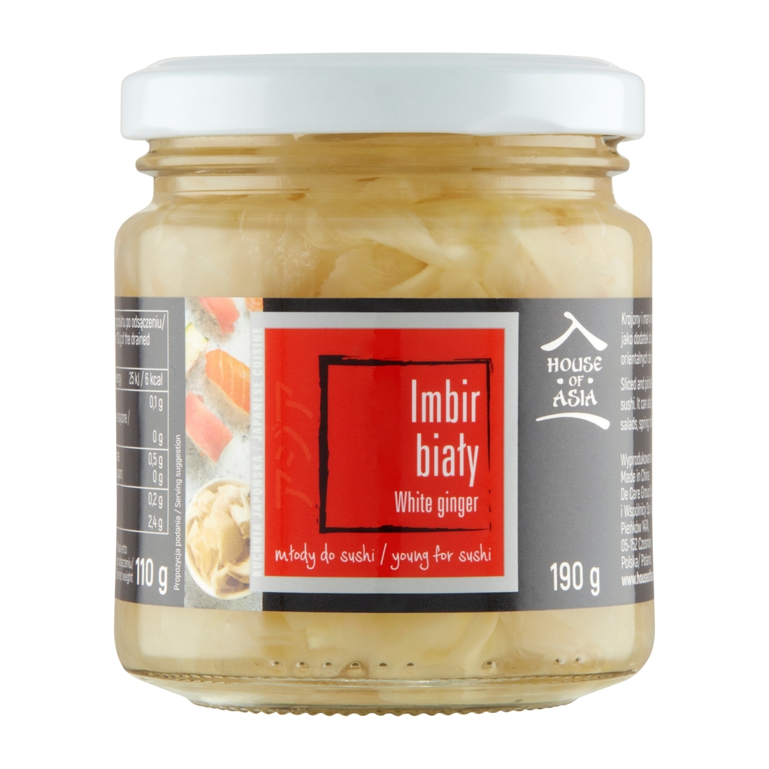 imbir 57,8 %, woda, sól, regulatory kwasowości: kwas octowy, kwas cytrynowy; substancja konserwująca: sorbinian potasu, substancje słodzące: aspartam, sacharyny, sukraloza.