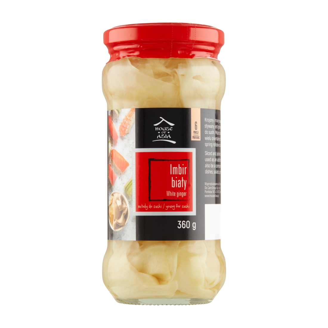 imbir 58%, woda, sól, regulatory kwasowości: kwas octwowy, kwas cytrynowy, substancja konserwująca: sorbinian potasu, substancje słodzące: aspartam, sacharyny, sukraloza.