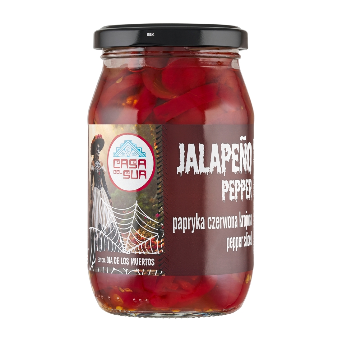 czerwona papryka Jalapeno 58,8 %, woda, ocet spirytusowy, sól, substancja wiążąca: chlorek wapnia.