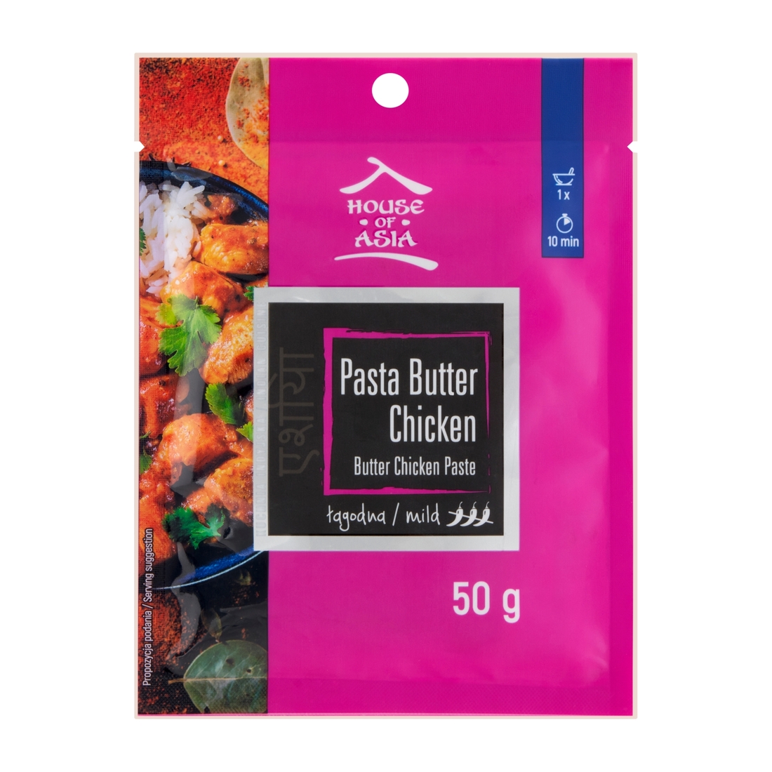 woda, pasta pomidorowa, cebula mielona, olej słonecznikowy, sok z tamarynda 5 %, nasiona kolendry mielone, cukier, sól, imbir 2 %, czosnek 2 %, skrobia kukurydziana, przyprawy, liście kolendry 0,8 %, chili mielone, ocet, barwnik: ekstrakt z papryki.