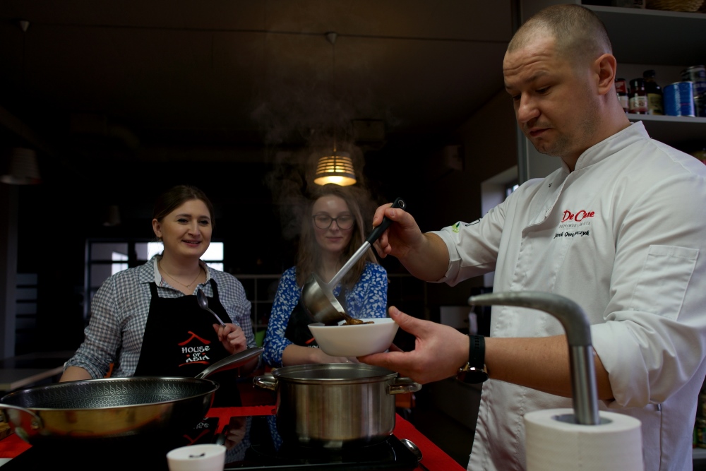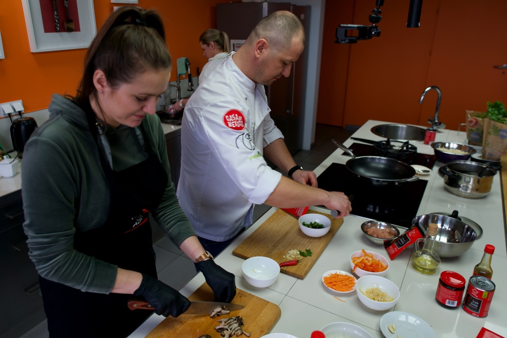 Poprowadził je nasz szef kuchni Jarek Owczarczyk, a uczestnicy mieli możliwość poznania i ugotowania wspólnie trzech potraw bazujących na produktach marki House of Asia: aromatycznej zupy z karkówką, kaczki po pekińsku i błyskawicznego makaronu chow mein z kurczakiem. Cieszymy się, że mieliśmy możliwość zorganizowania warsztatów i przekazania uczestnikom nie tylko tajników kuchni chińskiej, ale i wskazówek jak azjatyckie produkty w prosty sposób wpleść w codzienne menu.