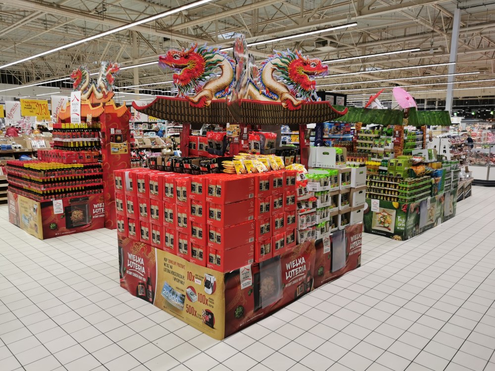 Akcja obchodów Chińskiego Nowego Roku to już wieloletnia tradycja De Care. Na przełomie stycznia i lutego na klientów sklepów w całej Polsce czekały kolorowe ekspozycje i pokazy gotowania na żywo. Miłośnicy orientalnych smaków mogli nie tylko spróbować specjałów kuchni azjatyckiej, ale zobaczyć jak przyrządzić je samemu w domu. A wszystko w wyjątkowej scenerii pełnej smoków i lampionów.